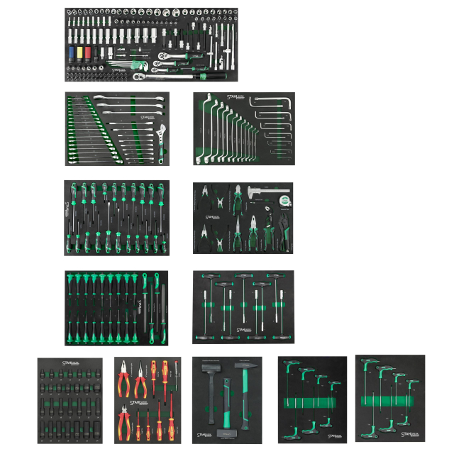 De SW10 gereedschapswagen biedt een complete oplossing voor werkplaatsen, garages en professionele klussers. Met 13 stevige lades, waarvan 12 gevuld met gereedschap van hoge kwaliteit, zorgt deze wagen ervoor dat al het benodigde materiaal geordend en direct toegankelijk is.